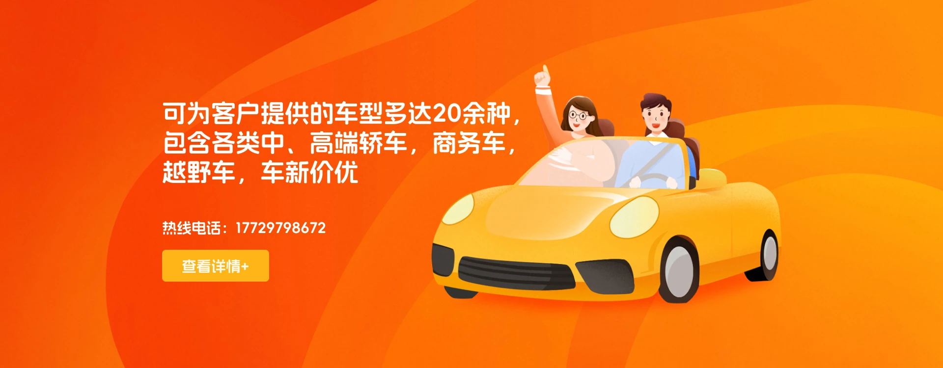Customer first, reputation first公司秉承“诚信经营”的理念,以客户为中心,提供便捷、高效、优质的服务。我们深知用户的满意和信赖是我们最大的收益和成果,因此我们将不断努力提升服务质量,用实际行动践行“优质车辆,**服务”的承诺。同时,我们也欢迎广大客户来电咨询和体验我们的租车服务